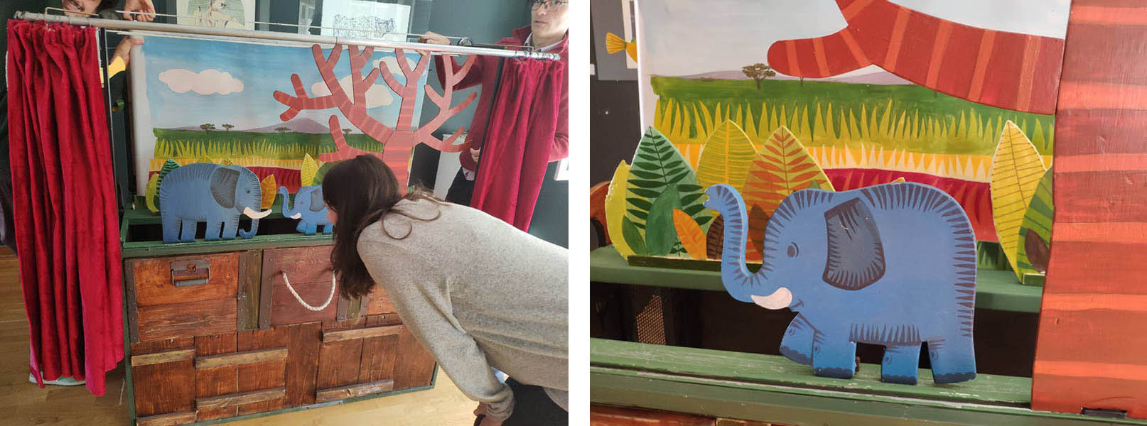 Uz pomoć kofera za čuvanje i pričanje priča, dvodimenzionalnim lutkama i uz par točkova, šrafova i raznih mehanizama, publici će ispričati priču o tvrdoglavom slončetu koje želi da bude neko drugi.